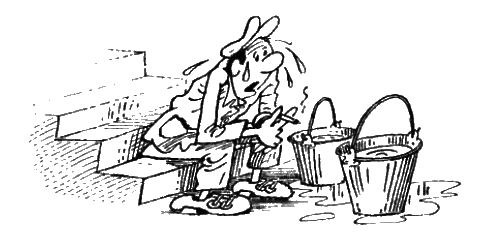 — Ну, нет. Мы за чужие недостатки отдуваться не собираемся. С ведрами — на двенадцатый этаж! И куда только диспетчер смотрит! Безобразие! Ладно, скорейшей вам починки!