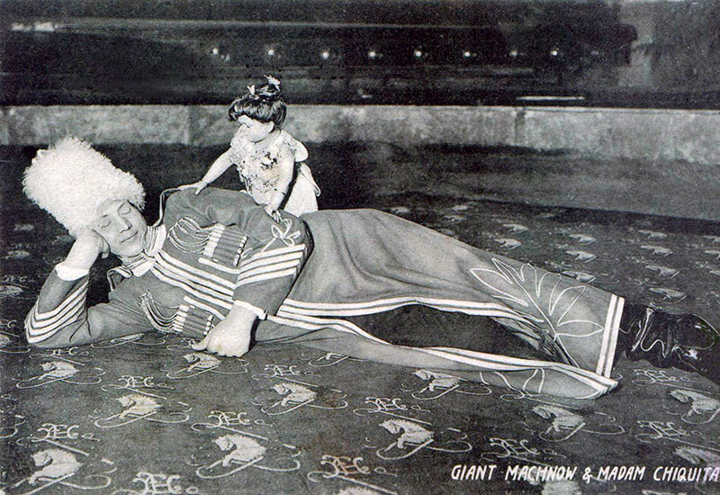 С русским великаном Федором Махновым в лондонском зале «Ипподром» в 1905 году. «Те, кто видел их на сцене, воображали, будто они прекрасно ладят, но на самом деле они почти не разговаривали».