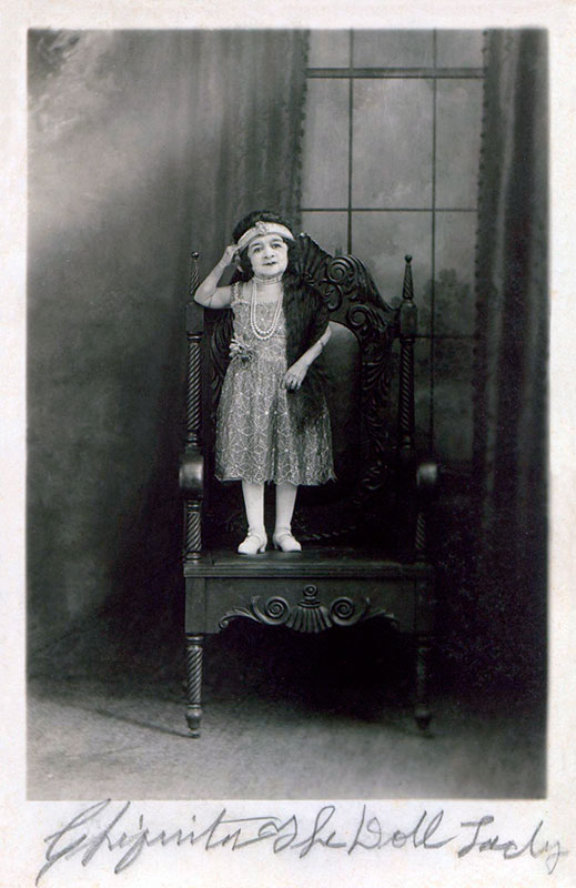 В коротком платье на рекламной открытке, продававшейся в округе Лейк, штат Огайо, в 1926 году. Чиките тогда было примерно пятьдесят семь, но в дарственной надписи на обороте она преуменьшает свой возраст, утверждая, что ей сорок четыре.