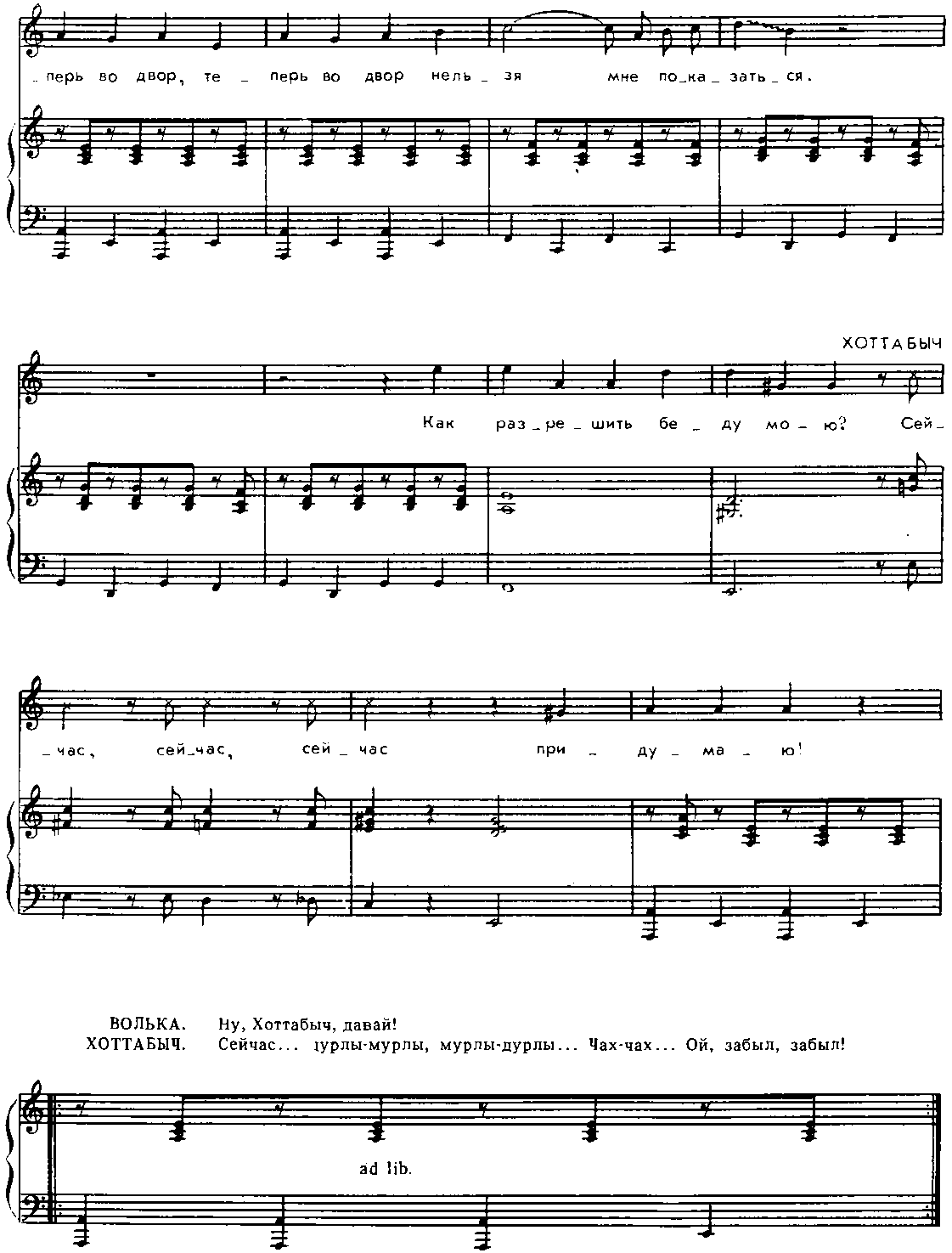 ХОТТАБЫЧ (через паузу). Скажи, Волька, а ты меня уважаешь?! Я тебя уважаю!