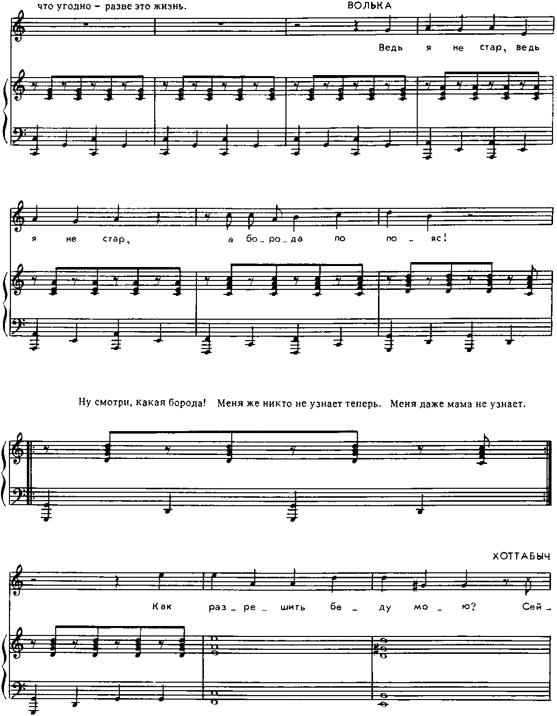 ВОЛЬКА. Хоттабыч! Пока я прошу тебя только об одном. Немедленно сними с меня эту идиотскую бороду.