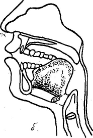 Рис. 4. Артикуляция У: а — снаружи; б — внутри.