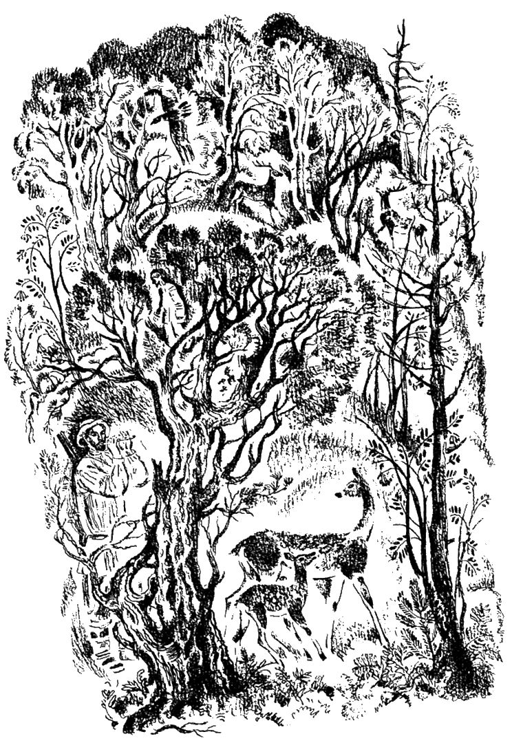 Метель вскоре перестала. Но ветер продолжался. Мы все-таки вышли промяться. И, переходя поле, говорили между собой, что вот если случится нам поднять беляка и был бы он вправду умный, то стоило бы ему только одно поле перебежать, и след за ним в один миг заметет и собака сразу же потеряет. Но где ему догадаться: будет вертеться в лесу, пока не убьем. Вскоре мы вошли в лес. Трубач случайно наткнулся на беляка и погнал. Весело нам стало: нигде ни одного следа, и по свежему, нетронутому снегу бежит наш беляк, как по книге. «Что ни делается, все к лучшему!» — весело сказали мы друг другу и разбежались по кругу. И только стали на места, гон прекратился. Пошли посмотреть, что такое. И оказалось, беляк-то был действительно умный и как будто услыхал наш разговор: из лесу он выбежал в поле, и следы его перемело, да так, что и мы сами кругом поле обошли и нигде следа не нашли. Пришли домой с пустыми руками и говорим Агафону: