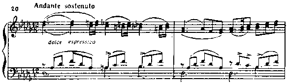 Но, повторяясь несколько раз, она постепенно стихает и как бы смиряется, становясь послушной и мягкой. Абдерахман, покоренный Раймондой, готов отбросить коварные замыслы, свою властность и гордость. Он падает перед девушкой на колени, но она в ужасе пятится от него. Однако Абдерахман становится все настойчивей. Постепенно его тема захватывает весь оркестр, звучит громко и требовательно, а коротенькие, испуганные ответы Раймонды тонут, как беспомощные, жалобные выкрики.