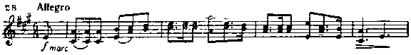 Фанфарными звуками труб, которые затем подхватывает скрипка, начинается новый, последний раздел-. Минор сменяется мажором, томление и раздумье — бесхитростным весельем, изящным танцем: