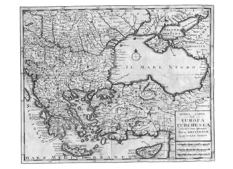 Карта турецкого влияния середины XVIII века – это территория с редкими вкраплениями городов. Большинство поселений расположено вдоль рек, особенно Дуная; на карте они напоминают клещей, присосавшихся к жилам. Здесь царит стихия воды: такое ощущение, что она повсюду. Империя начинается от Днестра на севере, на востоке касается берегов Черного моря, на юге простирается до Турции и Земли Израиля, а дальше тянется вокруг Средиземного моря. Того и гляди – круг замкнется.