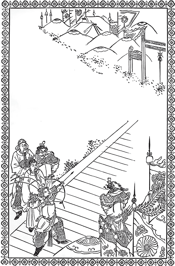 Цзи Лин явно был недоволен этим, а Чжан Фэй так и рвался в бой. Люй Бу разгневался и приказал принести ему алебарду. Цзи Лин и Лю Бэй побледнели.