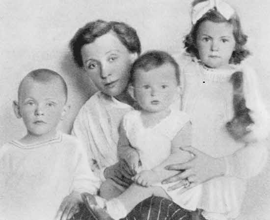 О. М. Михалкова с детьми Сережей, Сашей и Мариной, 1919 г.