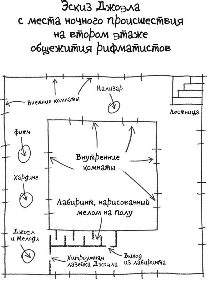 Мелоди кивнула, отчертила поперек коридора линию запрета, оставив две бреши, и принялась за лабиринт. Джоэл подошел и отчеркнул входы в лабиринт.