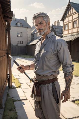 Бойцы удивленно переглянулись. Седовласый какое-то время изучал меня взглядом, после чего хмыкнул, бросил, не глядя, деревянный меч одному из подростков и пошел мне навстречу.