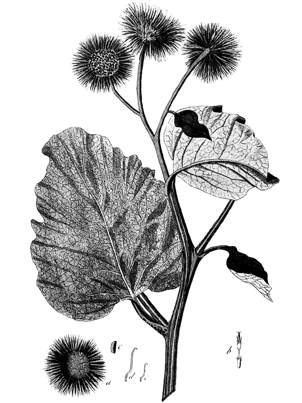 Французское слово bardane (репейник) имеет несколько вариантов происхождения. Вероятно, так изначально называли крупные прикорневые листья, а само слово произошло от итальянского barda, что означает «попона». По другой версии, слово bardane образовано от слов dardana (от dard — «жало») и barba (бородка, опушенная часть цветка). Так что будьте осторожны: у этого растения есть жала!