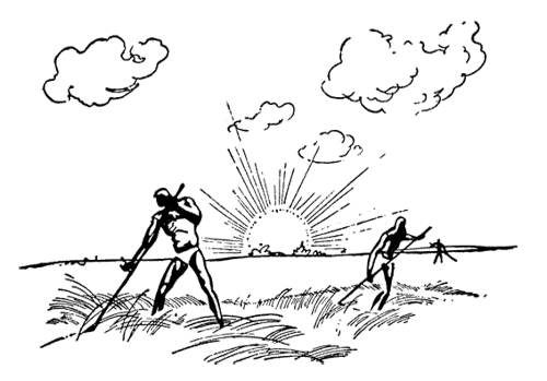 Как всегда, Кирилл со своим тихим «а» первый открыл глаза и сразу же сел. Остальные со второго окрика начали кряхтеть, шевелиться, потягиваться. Напившись молока, снова пошли на работу. Когда пришли на место, луг уже не казался необъятно широким. Скошено было больше половины травы.