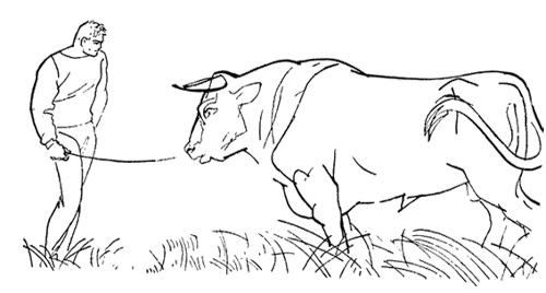 — Кирька! Кирька! — завопил он тоненьким голоском — Пират ты окаянный! Отвернуться нельзя от тебя. В других колхозах быки как быки, а тут леший какой-то, пошел вон отсюда! Вот погоди я бате скажу, он тебе поспустит шкуру за твою беготню.