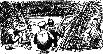 На небольшой, со всех сторон закрытой густой кроной деревьев полянке, метрах в пятидесяти от места высадки, собрался весь отряд. Моряки, увешанные оружием, разместились вокруг командира и замполита. Ольштынский поднялся и, помолчав немного, словно собираясь с мыслями, сказал: