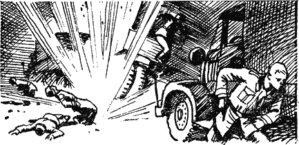 Не прошло и десяти минут, как отряд углубился в чащу, оставив на дороге четыре горящие машины и несколько трупов солдат. Правда, чья-то оплошность не осталась и для моряков безнаказанной: трое были убиты и пять ранены.
