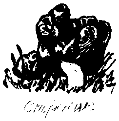 Солнце уже скрылось. Темнеет, холодно, и мы спешим на паром. На пароме тихо, кроме нас — никого. Добыча наша богата: шесть кошелок почти полны отборными весенними грибами. Бух! Причал шлепается в воду, цепляется за столб, и паром дрожа пристает к берегу. Коричневый дед стоит у сходни, кладет руку на каждую детскую голову, считает: