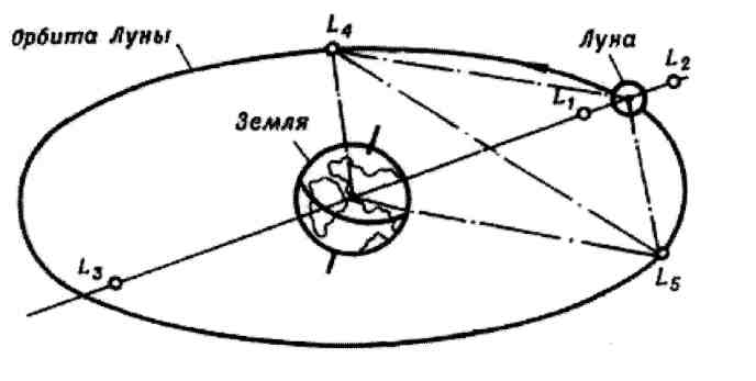 — Так вот, если поместить в эти точки объекты относительно небольшой массы, то не потребуется никаких усилий, чтобы они оставались на месте. Их обозначают обычно буквой L, их пять в системе Земля Луна. Давай для ясности я тебе это изображу. Он прижал грузами лист бумаги к столу. Смотри вот Земля и Луна: