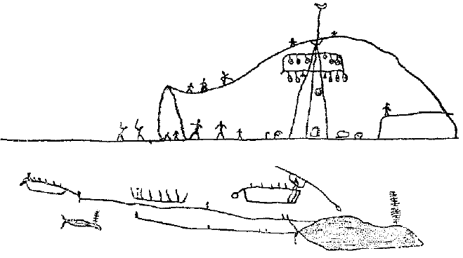 Рис. 74. Чукотский рисунок, изображающий праздник Keretkun’a.