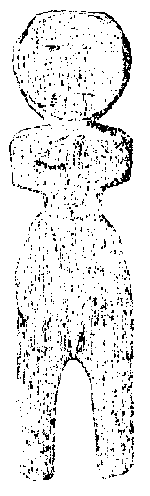 В селении Nunligren праздник Keretkun’a длится три дня и у большинства семей проводится со следующими подробностями. Утром в первый день праздника наружный шатер тщательно убирают и сверху подвешивают сеть со всеми принадлежностями. С обеих сторон очага раскладывают оленьи шкуры, которые изображают два внутренних полога. На выбранном для Keretkun’a месте ставят большую зажженную лампу, наполненную лучшим жиром. Предполагается, что Keretkun входит и садится на лампу, ожидая жертвоприношения. Поэтому на лампу ставят маленькое деревянное изображение Keretkun’a (рис. 80) и оставляют его там до конца праздника. Против лампы, на маленьком клочке земли, расчищенном специально для этой цели, раскладывают небольшой огонь, имеющий особое название (pint?). Предполагается, что этот огонь является местом, где Keretkun получает жертвы, поэтому его поддерживают все время с раннего утра до позднего вечера. Топливом служат маленькие кусочки дерева, кости и китовый жар. Азиатские эскимосы зажигают вместо этого огня лишнюю лампу, или же они приносят жертвы Keretkun’y на огне лампы, на которой он сидит. Эта разница значительна, так как лампа, заменяющая очаг, лучше приспособлена для безлесной тундры и для арктической приморской жизни, чем очаг, играющий столь важную роль на праздниках чукоч.