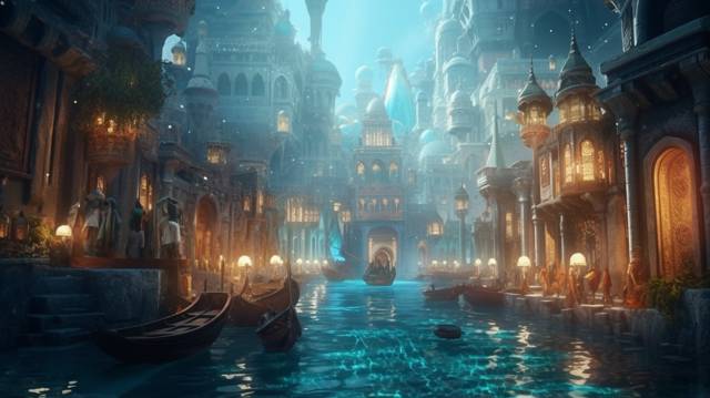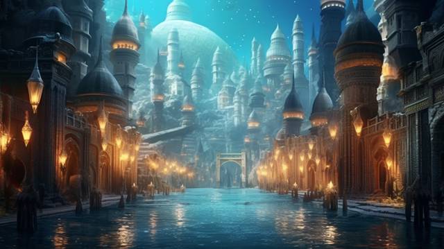 На этот раз декорации сменились, но я по-прежнему находился в подводном городе, но, скорее всего, в другой его части. И здесь, наконец, были люди, которые, почему-то, могли ходить по воде. Они направлялись к кораблю.