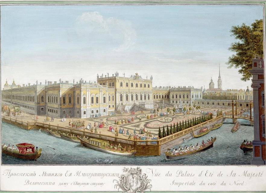 — А это — Летний дворец! — сообщил Протасов, указывая на массивное двухэтажное здание перед нами, с почти плоской крышей, украшенной многочисленными статуями и балюстрадой. Судя по мощному слою снега на изящных полукруглых лестницах, в Летнем дворце никто не жил. Даже под снегом видно было, что здание это уже сильно обветшало.
