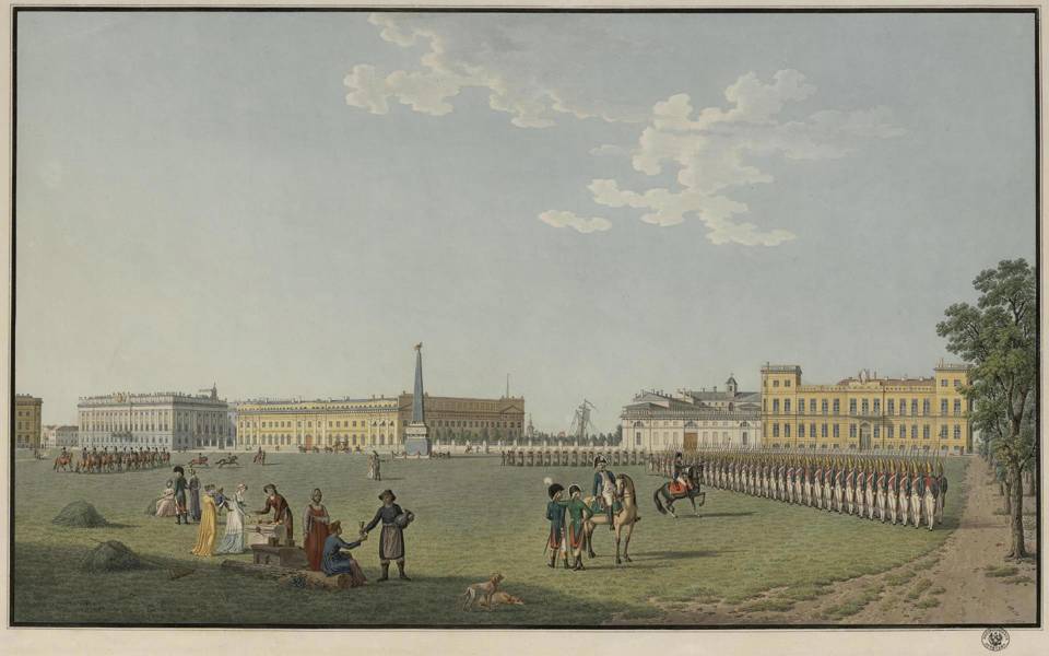 — А вот тот высокий дом — Морской и Сухопутный гошпиталь. А по левую руку от нас — Марсово поле, — продолжал рассказать Протасов.