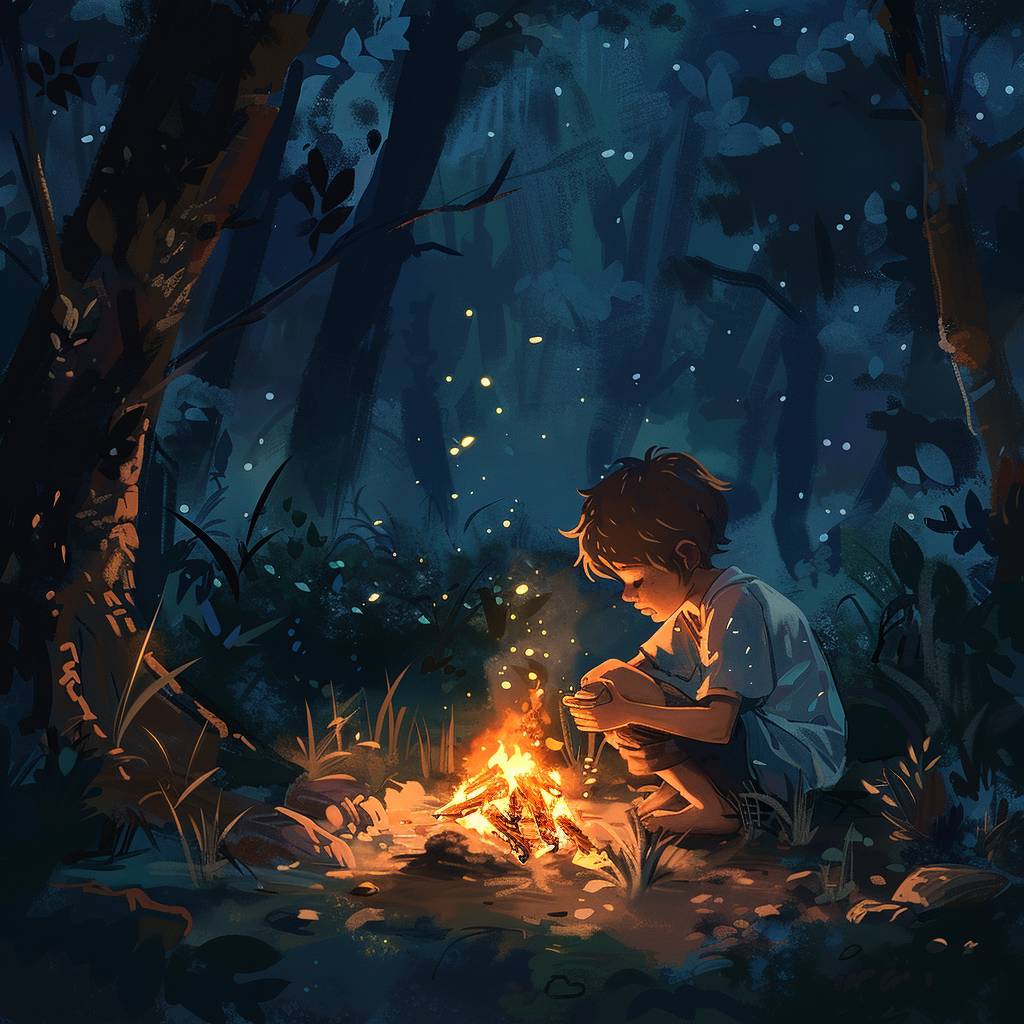 Но Муи и не хотелось никуда лезть. Ему хотелось спать. И погреться — у костра, например. А ещё лучше — у мамы в объятиях… Вот только в лесу нет мамы. Одна надежда на костёр.