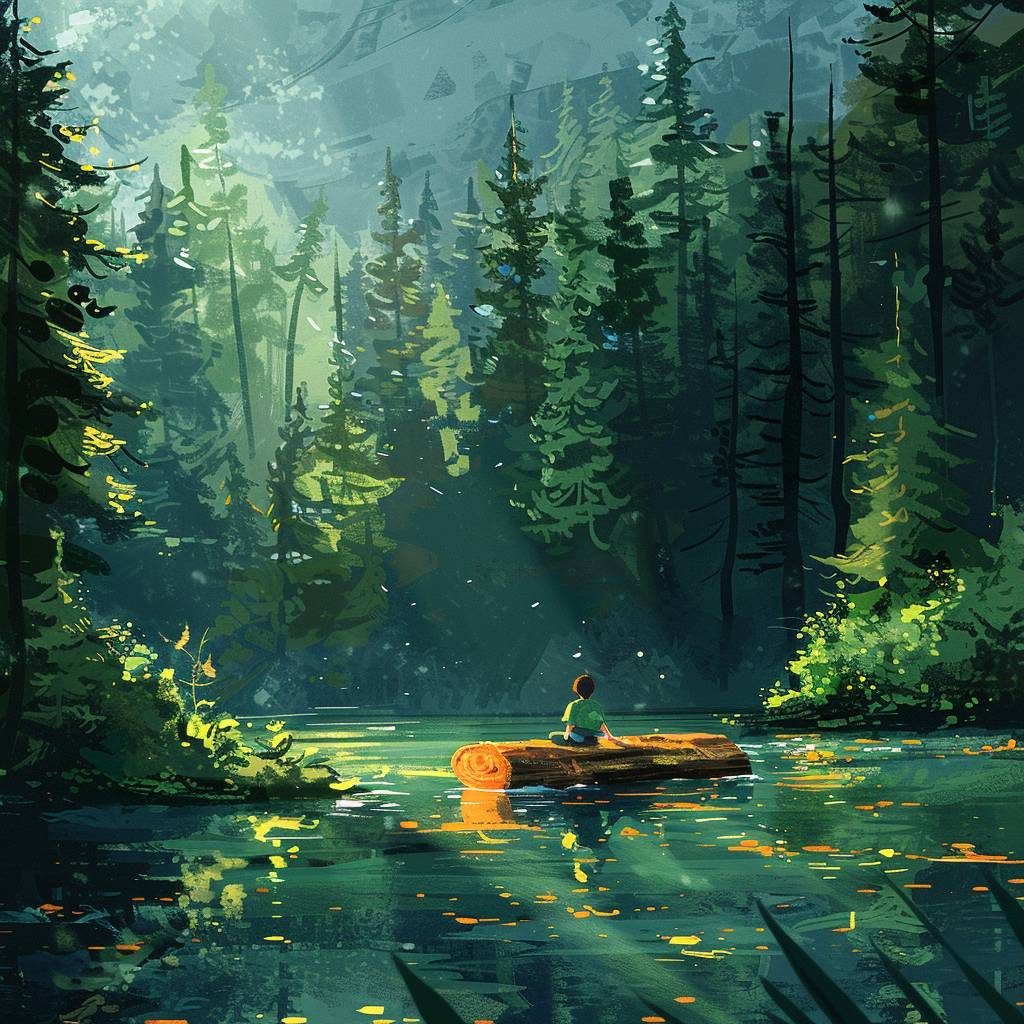 Поэтому храбрый мамундрик вооружился двумя палками вместо вёсел, спустил плот на воду и запрыгнул на него.