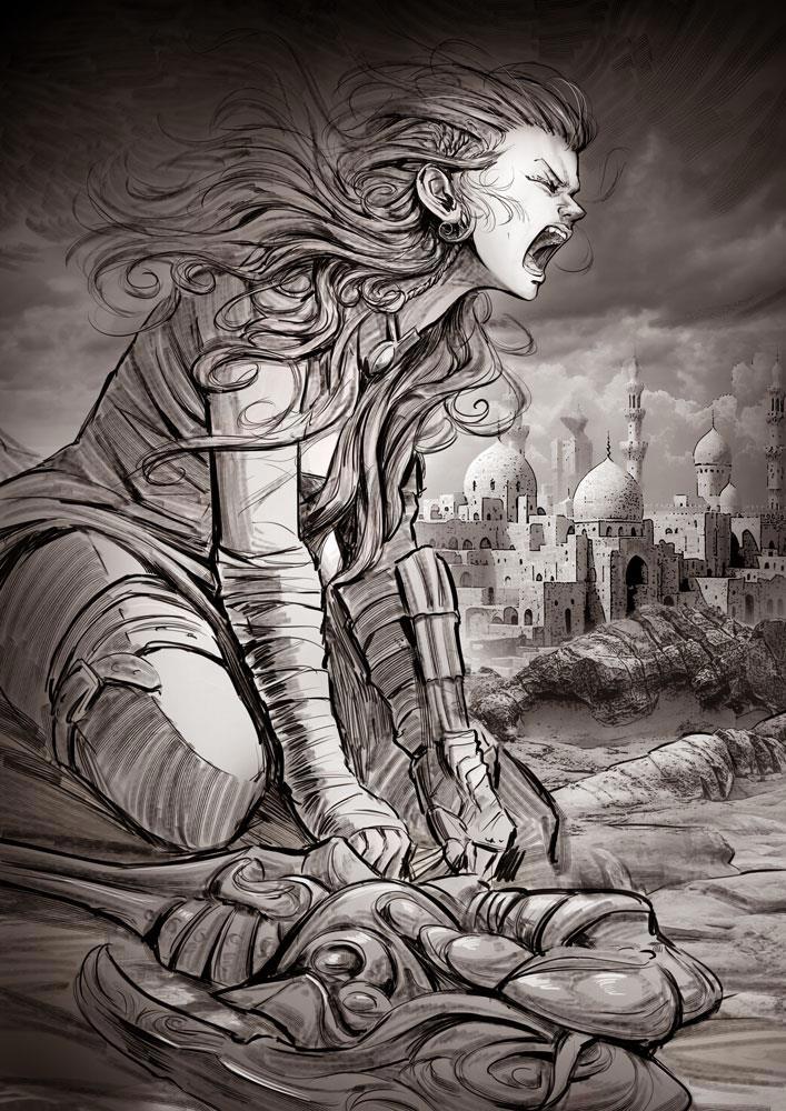 Рюга глядела на украшение. Даже в лунном свете было видно, что серьга вся поцарапанная и кривая, а белый камень, нанизанный, посередине покрылся трещинами. Дождавшись пока Хазем уйдет, она поджала украшение пальцами, прижала его к груди, уперлась лбом в песок.