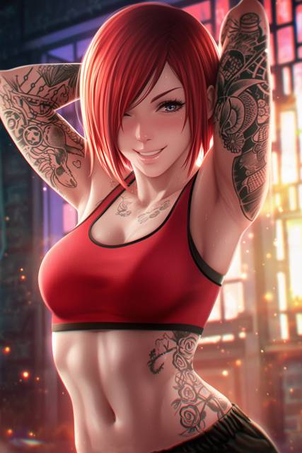 Второй была Алексия Леонидова. Тоже простолюдинка, показала себя неплохо, говорят одна из лучших по стрельбе, да и в спаррингах была хороша. Но выделяло её среди остальных не это, а её несколько вызывающая внешность. Рыженькая была очень неплоха внешне, однако главное тут это её татушки, которые я видел даже несмотря на униформу. Нравы местных ныне такие, что татуировки, причём вот такие вычурные, это малость перебор. Вот явно она та ещё сорвиголова или просто безбашенная. Но кто сказал, что это плохо?