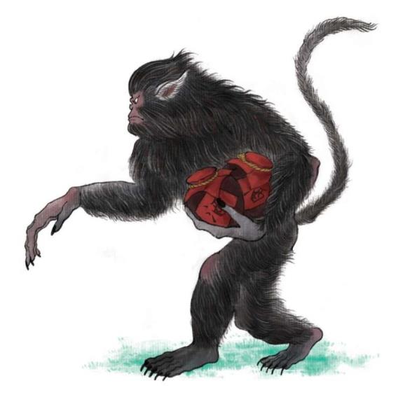 Современное понятие «орангутанг» на самом деле включает в себя несколько видов приматов: например, гориллу, шимпанзе и красного орангутанга. Горилла – самый крупный из ныне живущих приматов, именно она стала прототипом главного персонажа в фильме «Кинг-Конг». Шимпанзе обладают очень высоким уровнем умственных способностей и в своём развитии очень близки к человеку. Генетически люди и шимпанзе очень похожи. Гориллы и шимпанзе главным образом распространены в Африке, а красные орангутанги проживают в Юго-Восточной Азии. Когда-то в южной части Китая можно было встретить много красных орангутангов; в узком смысле именно они являются истинными «орангутангами». Однако описываемого в древних китайских книгах «орангутанга», или Синсина, едва ли можно соотнести с этими животными: согласно легендам, Синсин – существо прямоходящее. По легендам орангутанги Синсин – запойные пьяницы, о чём и рассказывает следующее древнее сказание.