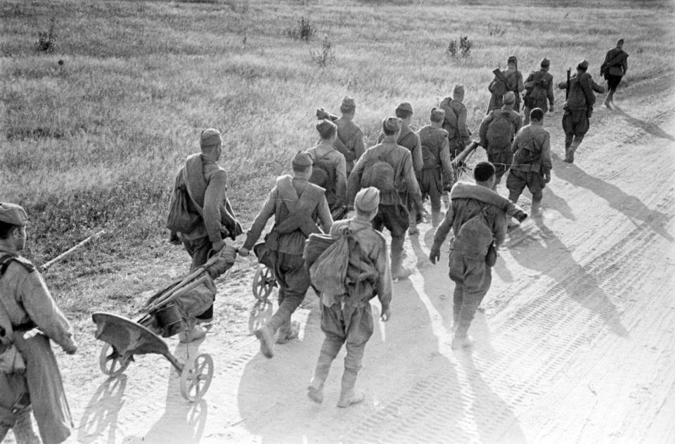Пехота и минометчики на марше. Лето 1943-го.