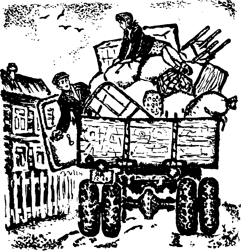 Мы молчим. Долго молчим. Мы видим, как возвращается дядя Юра и исчезает в воротах. Потом мимо нас тарахтит грузовик, до краев нагруженный всякой мебелью и узлами, а на самом верху сидит девушка с перепуганным лицом.
