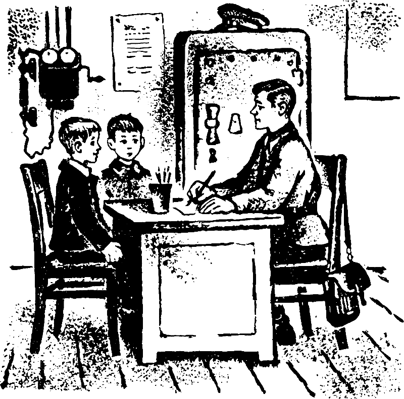 — Сейчас посмотрим, куда вас можно определить, — сказал он и углубился в книжку.