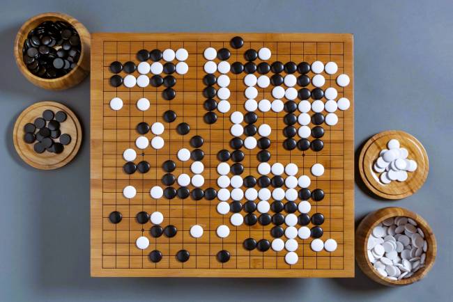 Камни ставятся на перекрестья, а не в клетки. А дальше игроки строят «забор». Чем больше территорий в конце партии остается за вашими «оградами», тем выше шанс на победу. Каждый взятый «в плен» вражеский камень — это одно очко. Каждое перекрестье, надежно обнесенное «забором» твоего цвета — одно очко. Перевес хотя бы в одно очко — победа.