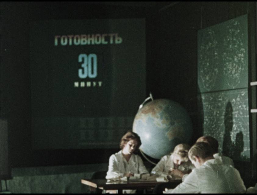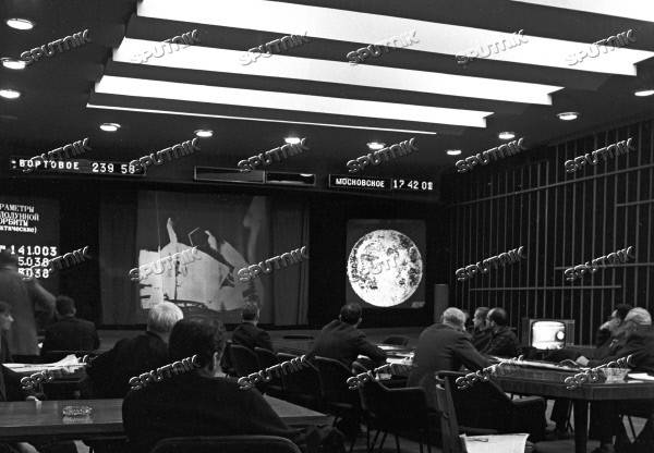Если вы представили сейчас большой зал в виде амфитеатра с рядами компьютеров, экранов и рабочих мест, то ошибаетесь. Даже в научно-фантастическом фильме «по мотивам» «Время первых» использована копия ЦУПа NASA. Помещение больше походит на телевизионную студию. Сразу в глаза бросается центральный экран 2 на 1 метр, как и два боковых. Основная масса сотрудников работает за длинным столом, заваленным бумагами и инструментами. Около стены второй. Удивил стоящий в углу огромный глобус Луны. Видимо, остался после запусков туда спутников. В руках у девушек за маленьким столиком перфоленты с распечаткой информации, выданной ЭВМ. Еще бросается в глаза глобус Земли и карта звездного неба у них за спиной. На боковых экранах выведены какие-то параметры.