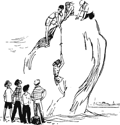 — Ребята, вы слыхали, что они говорят? — заорал он вниз. — Спускать их после этого с камня или нет?