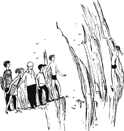 Скоро полоска гальки кончилась, и вверх полезла едва заметная тропка — с камня на уступ, с уступа на выбоину. У Одика то и дело подворачивались ноги, одной рукой он придерживал Олю, второй касался бугроватой стены. Перед ними, сопя и потея, ковылял и неуклюже прыгал с камня на камень Вася. От стены, нависшей над ними, веяло прохладой и дикостью.