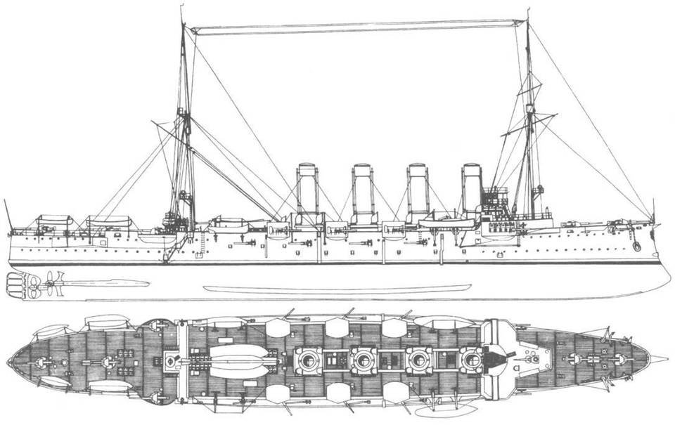 Контр-адмирал Ухтомский тяжело вздохнул — для князя оказаться в подчинение Рейценштейна было тягостно, ведь тот младше его по «старшинству» в чине. Но с другой стороны он понимал правоту Матусевича, который решил, что при необходимости корабли 2-й дивизии, а так стали именовать крейсера бывшего ВОКа, могут действовать двумя парами. В первую бригаду входили быстроходные крейсера «Громобой» и «Россия», а во вторую медлительные «Победа» и «Рюрик», вполне соответствующие по скорости броненосцам. Причем головные корабли были отремонтированы во Владивостоке сразу после боя в Корейском проливе, работы шли днем и ночью, их серьезно довооружили, правда, не восьмидюймовыми пушками, а снятыми с «Богатыря» 152 мм орудиями. А вот «Победу» и «Рюрик» работы практически не затронули, корабли только наспех «подлатали», заделав пробоины. Да серьезно снизили перегрузку, сняв все лишнее. Единственное, что сделали — заменили на «Рюрике» 120 мм стволы, поставив шестидюймовые орудия. Да на батарейной палубе отгородили орудия друг от друга тонкими, всего в полдюйма обычной стали, противоосколочными перегородками. Совершенно никудышная защита, к «рюриковичам» подошли ведь гораздо серьезнее. Но так они представлялись более ценными, чем их «прародитель», да изначально намного лучше забронированы — на том же «Громобое» броневой пояс в шесть дюймов прикрывал почти две трети длины (91 из 146 метров) по ватерлинии, и высотой почти в два с половиной метра гарвеевских плит. «Россия» имела подобную схему бронирования, а вот «Рюрик» прикрывался в центре по ватерлинии лишь сталежелезными плитами, пушки кроме щитового прикрытия, казематной брони не имели. Да и не нужна она была океанскому крейсеру, изначально не предусматривалась.