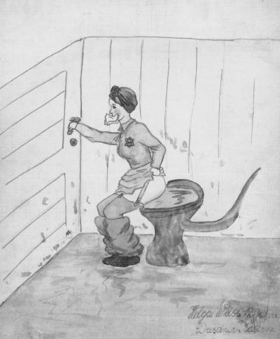 Упомянутый рисунок датирован 1942-м годом и принадлежит Хельге Вайсовой (Хошковой). Три рисунка с указанием даты и номера комнаты были сделаны на занятиях у Фридл, но Хельга это отрицает. Не в обиду будь сказано, но недостатки, которые отметила Фридл, есть и в ее нынешних картинах.