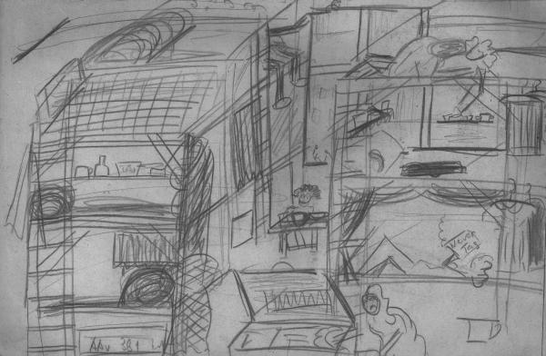Э. Нет, оставалась в L 318, в комнате для воспитательниц. Есть у меня рисунок трехэтажных нар. Представьте, каково лежать с жутким поносом на третьем ярусе! Температура под 40, невероятная слабость, и при этом без конца бегать в туалет, а он один на всех – и постоянно занят. Это страшно изматывает. Болезни были постоянным фоном жизни. Одно время у меня все тело было в нарывах. Месяцами. Нужны были антибиотики, их не было. У меня были импетиго, туберкулез, тяжелый артрит, воспаление тройничного нерва… Когда я болела всерьез, меня заменяла помощница. Она спала в том же доме, но в другой комнате.