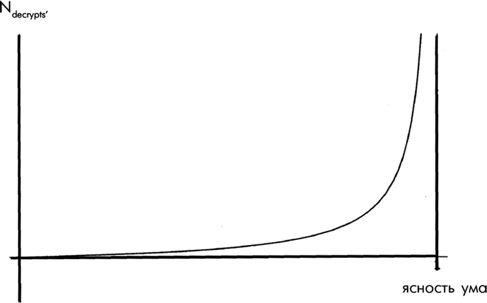 где Cm = 0 — полное помрачение рассудка, а Cm = 1 — божественная ясность, недостижимое состояние безграничного разума. Если число сообщений, расшифрованных Уотерхаузом за конкретный день, обозначить как Ndecrypts’, то зависимость Cm от этой величины будет выглядеть примерно так: