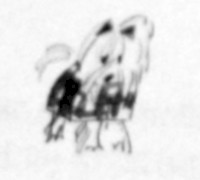 У одной старушки была собачка — белая лохматая сучка в клетчатой шерстяной попонке и с розовой лентой на голове. Тина с другими собаками ладила плохо и запросто бросалась на тех, что были больше её. Но с лохматой они мирно понижались носами.