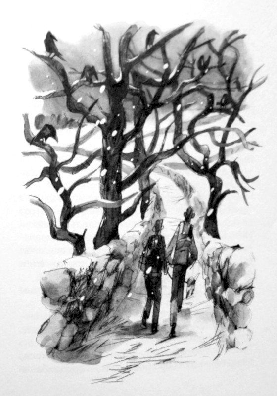 Как только мы ступили на тропу, меня охватило странное ощущение. Только что мимо неслись машины и грохотали грузовики, а в следующий миг вокруг раскинулся совсем другой мир. Каменные изгороди между полями казались руинами старинных замков, а голые чёрные деревья — чудовищами, скованными чарами добрых волшебников. Это было почти как когда начинаешь читать книжку — открываешь её и сразу переносишься в выдуманную вселенную.