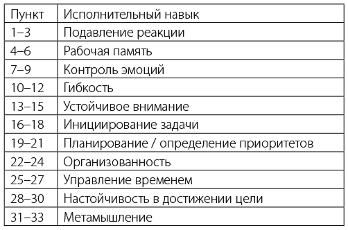 Используя приведенную ниже шкалу, оцените каждый пункт в зависимости от того, насколько хорошо он описывает вас. Затем сложите результаты в каждом разделе. С помощью ключа определите свои сильные (два-три самых высоких балла) и слабые (два-три самых низких балла) исполнительные навыки.