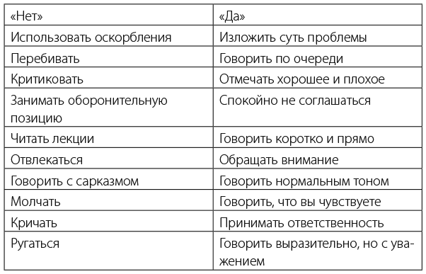 В книге «Непокорные подростки» Рассел Баркли, Гвенит Эдвардс и Артур Робин предлагают четыре области, которые могут существенно повлиять на взаимодействие детей и родителей. Первая область касается того, что можно и чего нельзя делать в общении, укрепляющем сотрудничество. Приведенные ниже списки взяты из их работы.