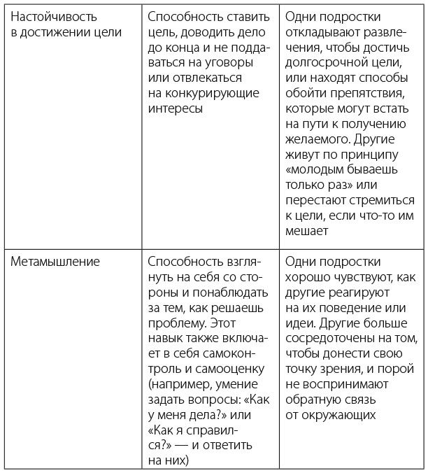 В таблице 1.1 перечислены исполнительные навыки в порядке их возникновения, даны определения каждого навыка и примеры того, как они проявляются у подростков.