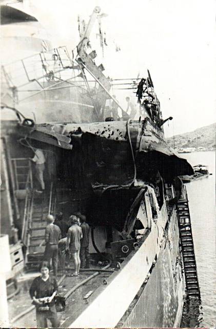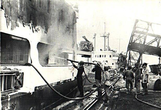 Радист от шока не мог ещё прийти в себя, потому что он был в радиорубке и видел, как с самолёта совсем рядом падали и взрывались бомбы. Он уже успел попрощаться с жизнью, но судно и не думало тонуть. Позже он стал отвечать, что у них на борту нет ни убитых, ни раненых. Но к «Зее» уже на полном ходу спешили санитарный и пожарный катера. Над акваторией стелились остатки тумана и черный дым. На берегу разгоралось яркое зарево. Похоже, что задели не только нефтехранилище. Слышались многочисленные сирены и рев моторов. На палубу подошедших катеров с «Зеи» начали прыгать матросы срочно сформированных аварийных команд, спеша на помощь настоящим пострадавшим.