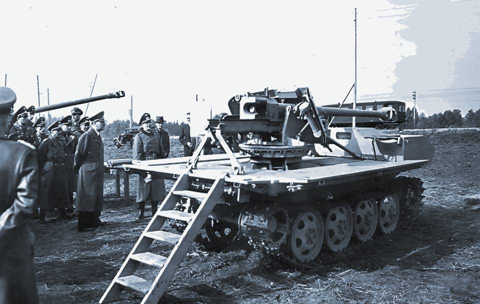 В виду недостатка бронетехники, и в первую очередь танков, в «третьем рейхе» активно прибегали к всевозможным паллиативам, чтобы хоть как-то компенсировать потери. И первым «ценителем» всяческих «эрзацев» понятно кто был, очень «влюбленный» в подобные вещи…