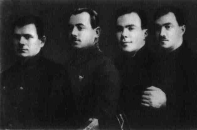Бойцы бригады бронепоездов 14-й армии. Слева направо: Филипп Арсентьев, Иван Папанин, Всеволод Вишневский, Пётр Попов.